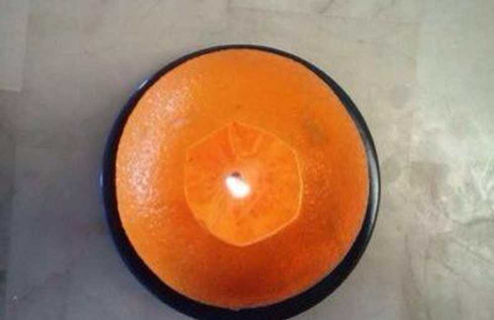 الخطوه الرابعه: يمكنـك عمـل غطـاء لهـذه الشمعـه عـن طريـق تفريـغ نصـف الثمـره الآخـر وعمـل فتحـه فـي الاعلـى فيهـا مـن اجـل اعطـاء شكـل جمالـي.