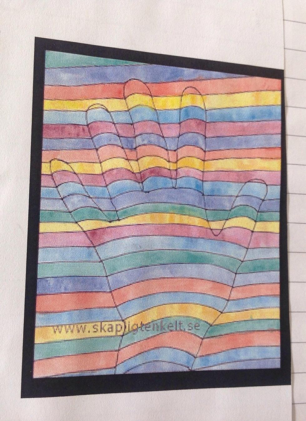 Rita av din hand med blyerts. Fyll i med den svarta pennan.