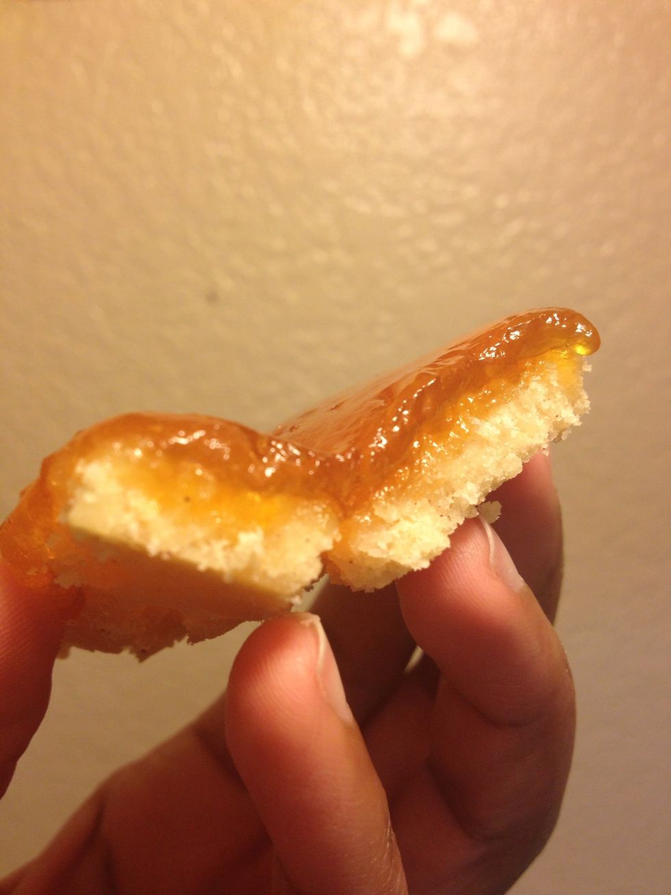 Cut into bars. If you are using tangy jam, sprinkle powdered sugar. If you have a super sweet-tooth, sprinkle powdered sugar 😋