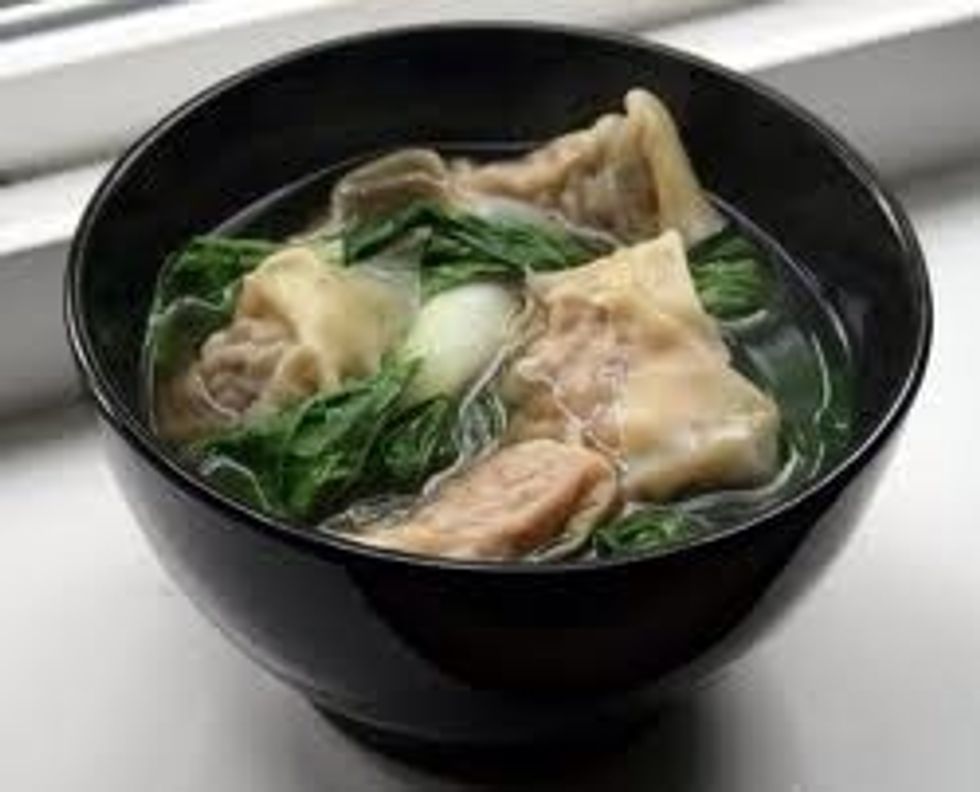 Ingredients: beef or chicken bouillon cubes, oyster sauce, bok choy and won ton of choice.