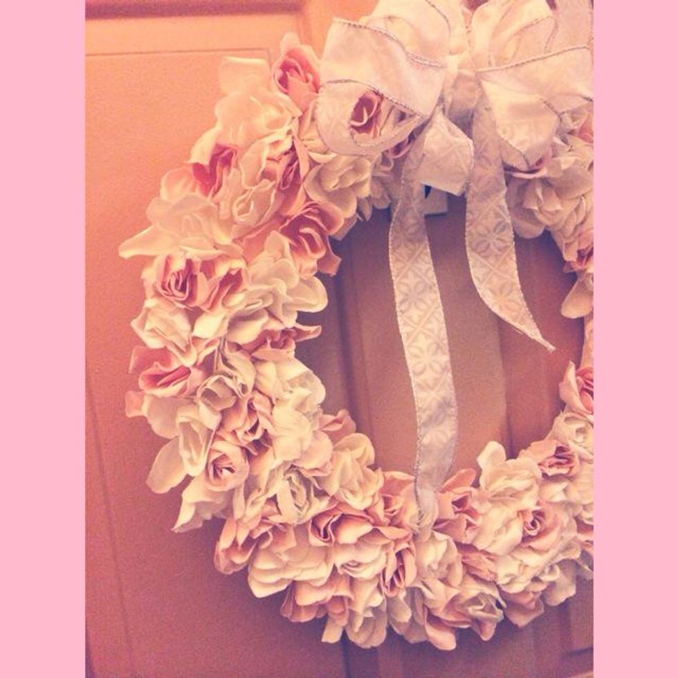 Here are the supplies! Depending on the size of the wreath you use will determine how Many rose pedal containers you will need. I used 7 white and 4 pink ( I ransacked their entire stock!)