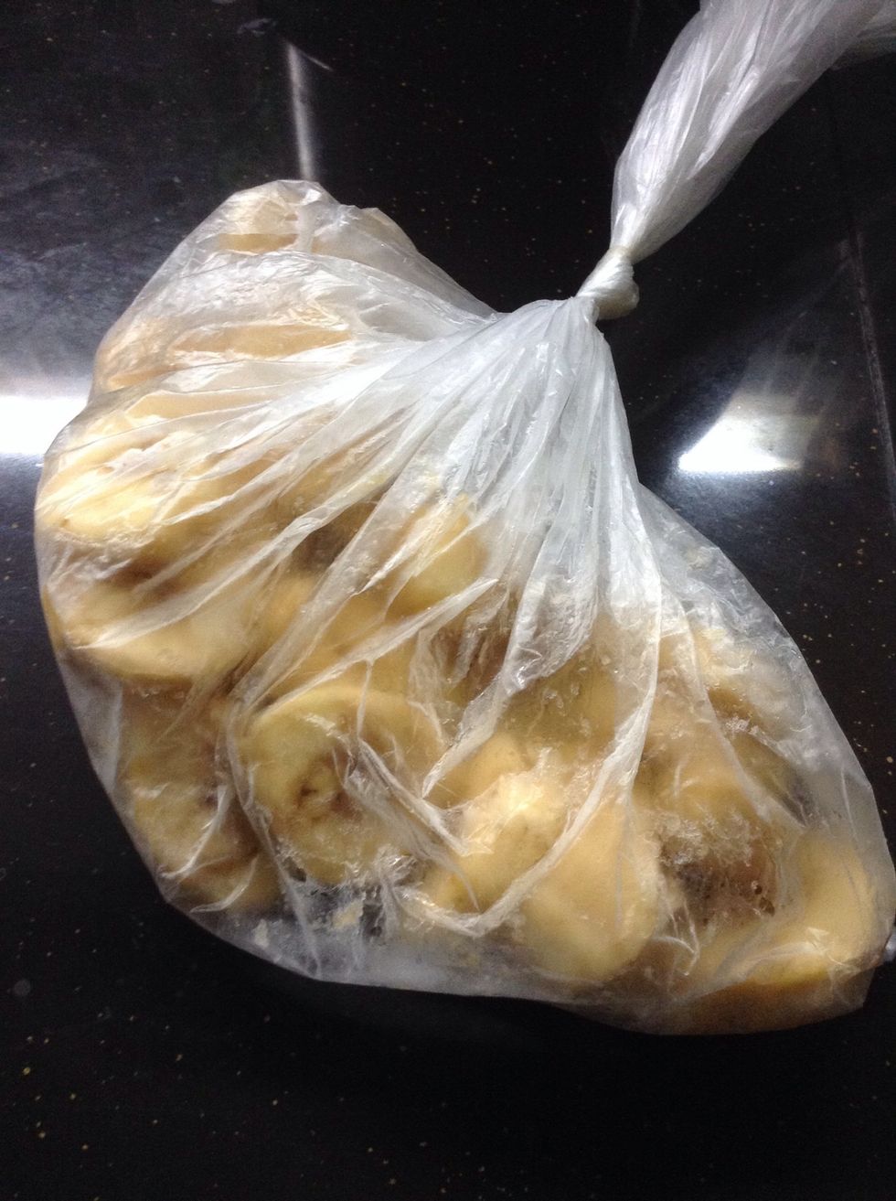 First cut the banana into chunks and place them in a airtight bag.
