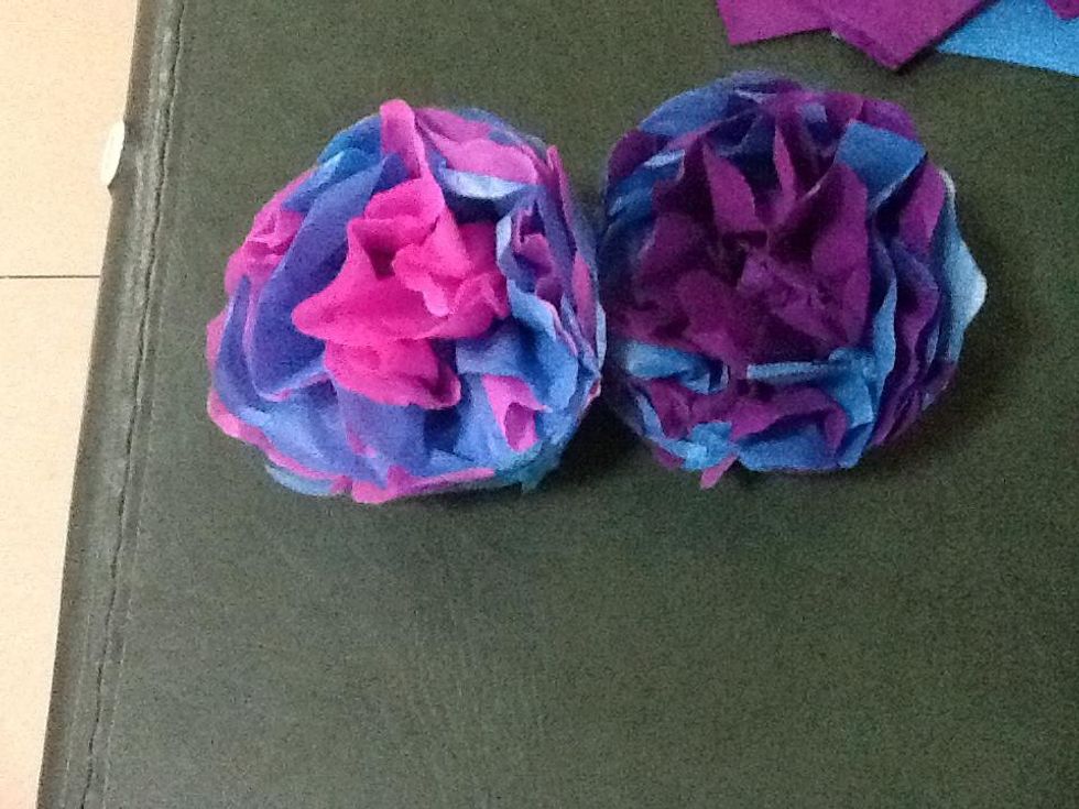 You must have 2 Japanese/crepe paper (diff. Colors)Cut out 6 pieces of paper (3 per color) Size:10x8 inchesCut the end (shown in picture