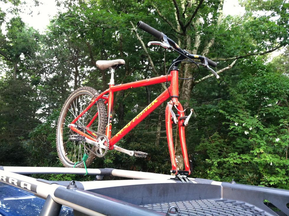 Rad! You're now ready to hit the muddy trails and come back with your bike on the OUTSIDE of your car. Pro-Tip: Spin your cranks. If they'll hit your roof, use another bungee to keep them from moving.