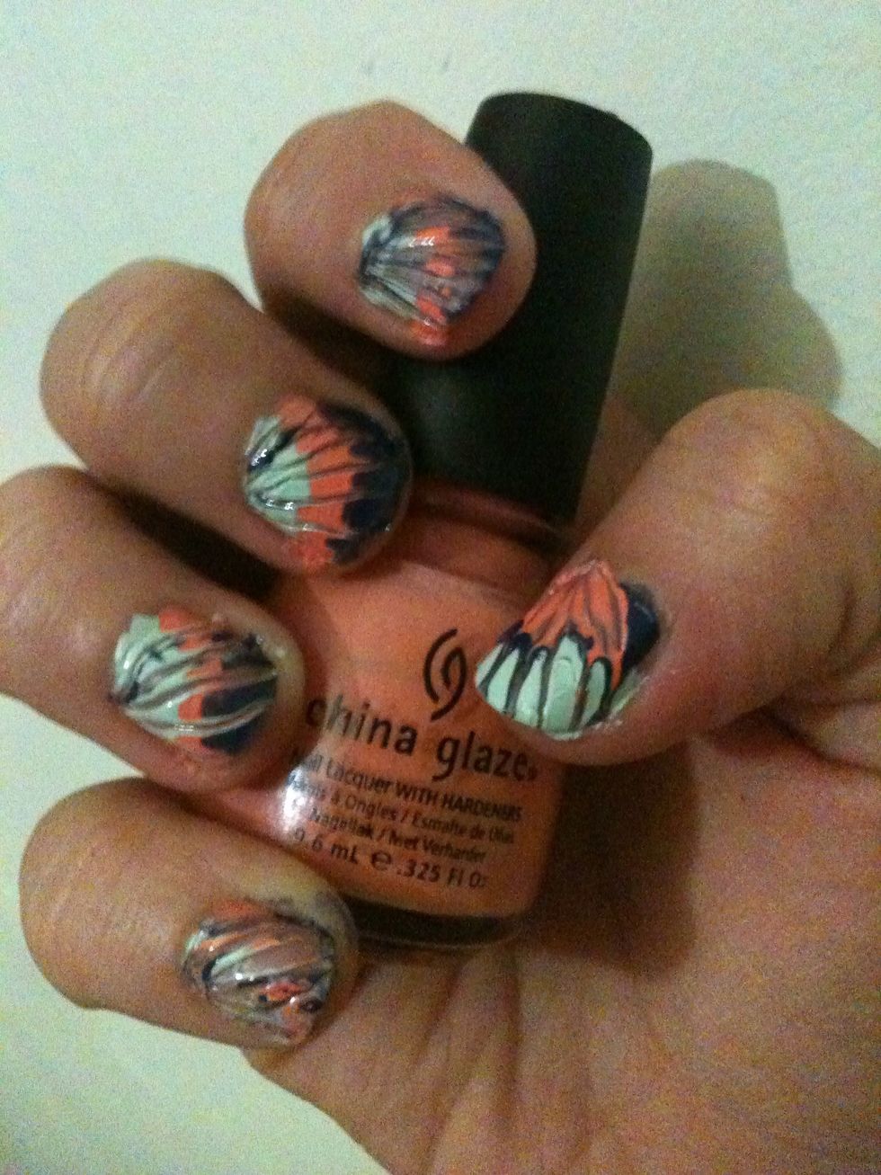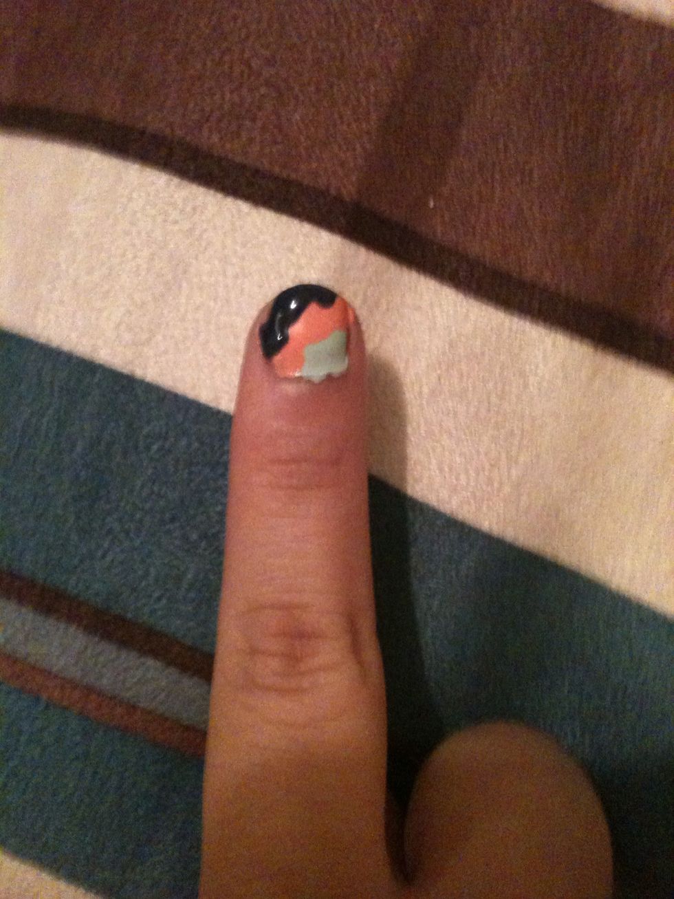 Once you have completed all your nail, wait a few seconds until your nail polish its almost dry (sticky) and with the toothstick create diagonal lines from the corner to the end of your nail.