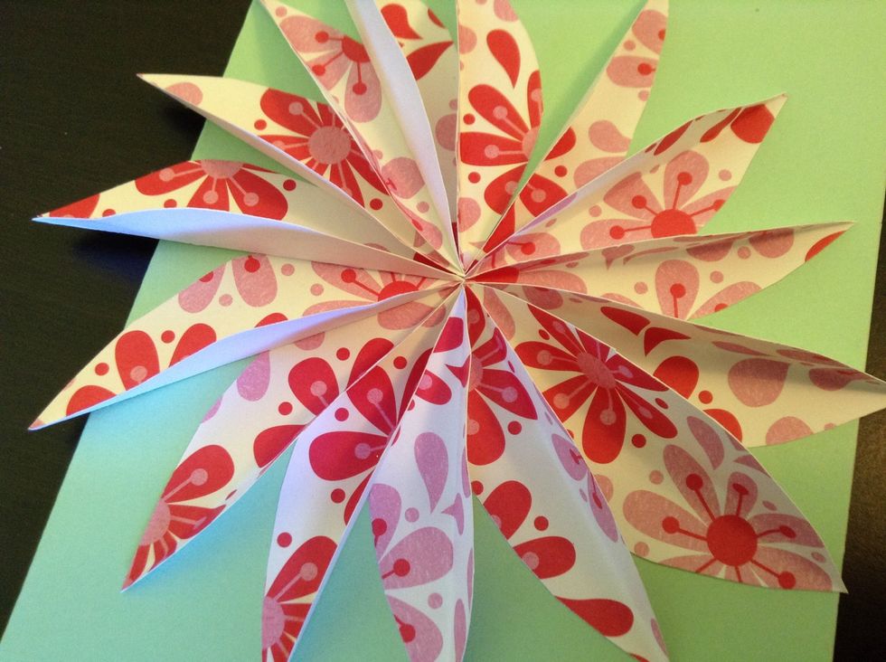 Next fold the scrapbook paper. Trace the folded petal. See the video.