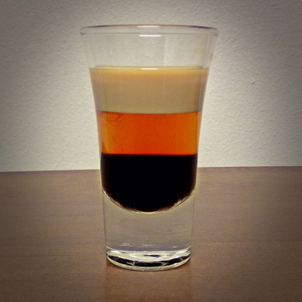 Finally, slow-pour a 1/2oz of Bailey's Irish Cream.