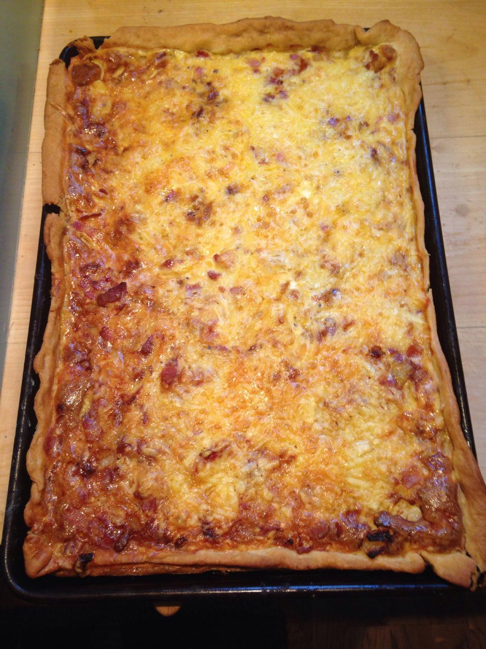 Get your ingredients ready, turn the oven on and pre heat to 200 degrees Celsius. Turn your hob up and get ready to fry up some bacon and onions