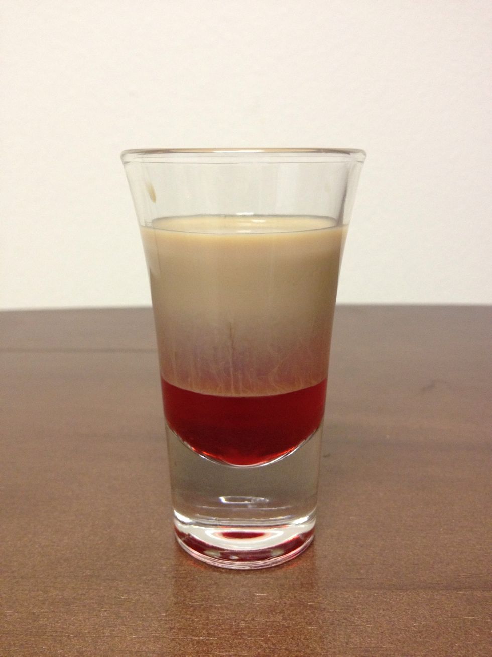 A milky, sweet little drink. Grenadine and Baileys will keep separated. The Bailey's and Amaretto, however, may blend. I hope you enjoy this! Don't forget to like and FOLLOW! Please drink responsibly.