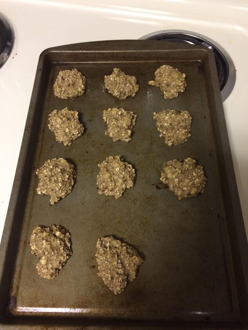 The supplies! 2 bananas 1 cup of oats Medium sized bowl Greased cookie sheet 1 fork and spoon