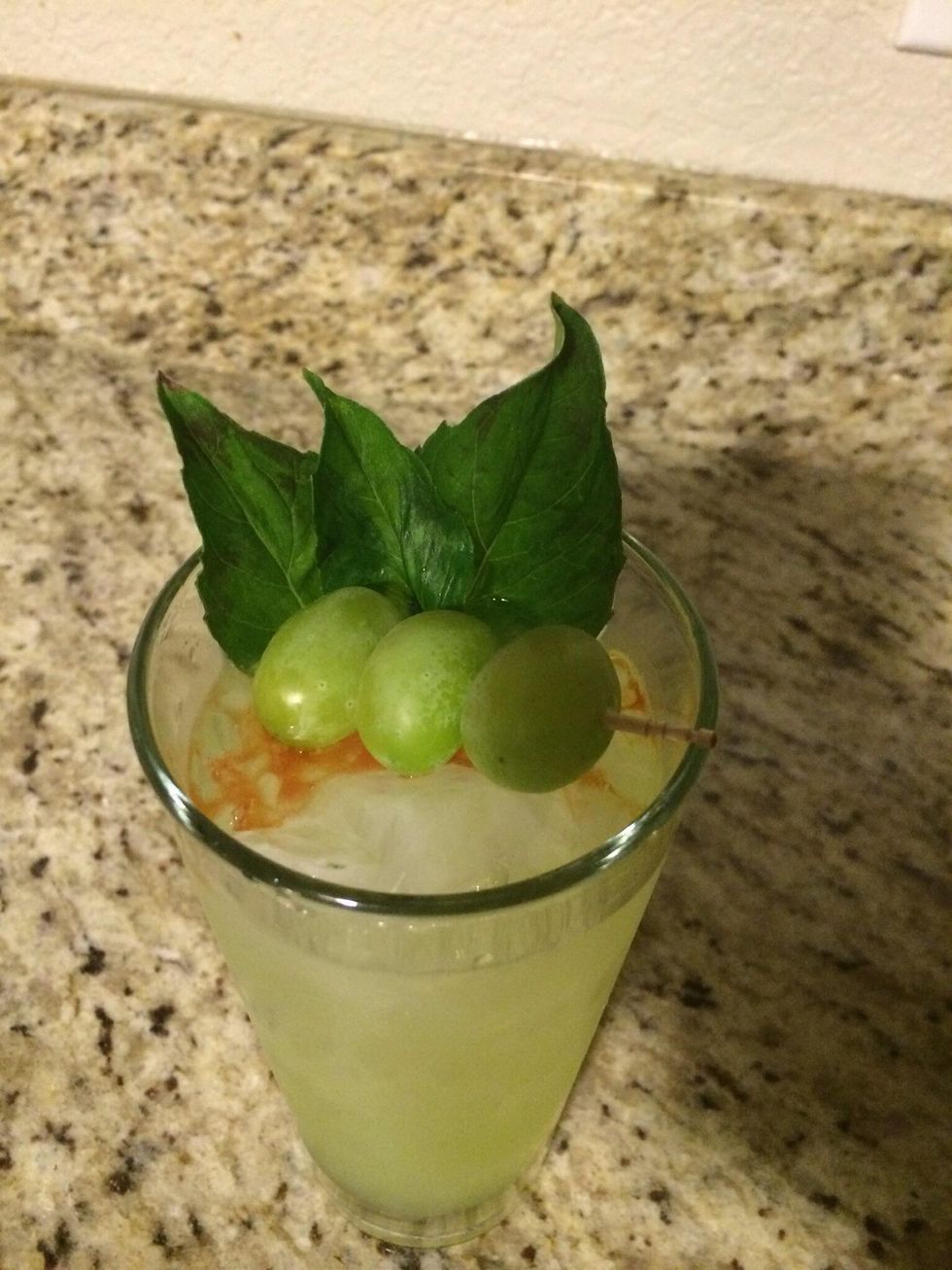 Top it off with a few dashes of bitters, some frozen grapes, and another bruised basil leaf.