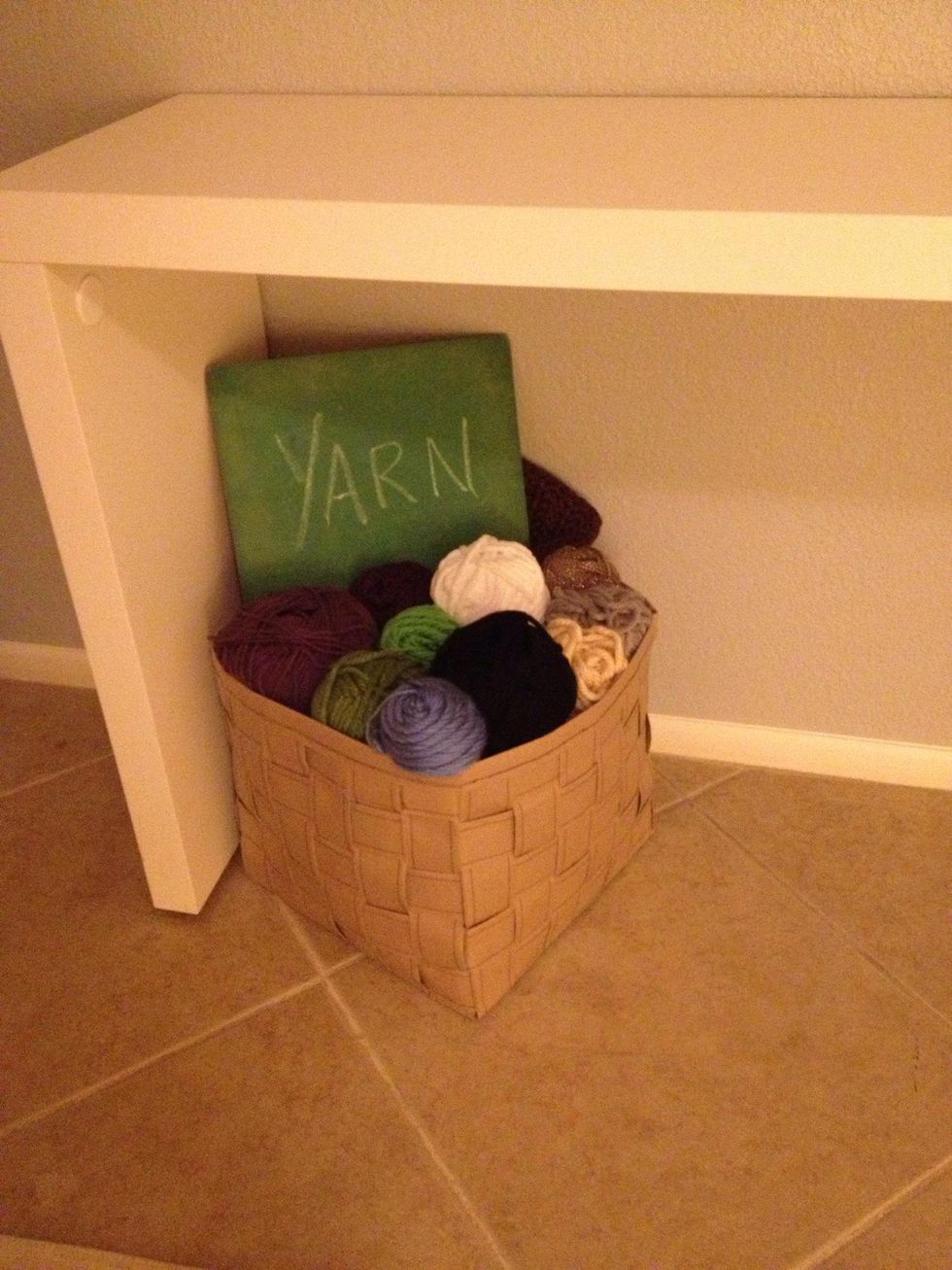 My finished basket ended up being way bigger than I expected but made a nice little home for some yarn.