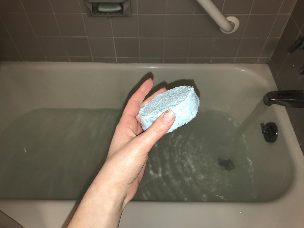 Fill the tub and drop your bath bomb into the bath.