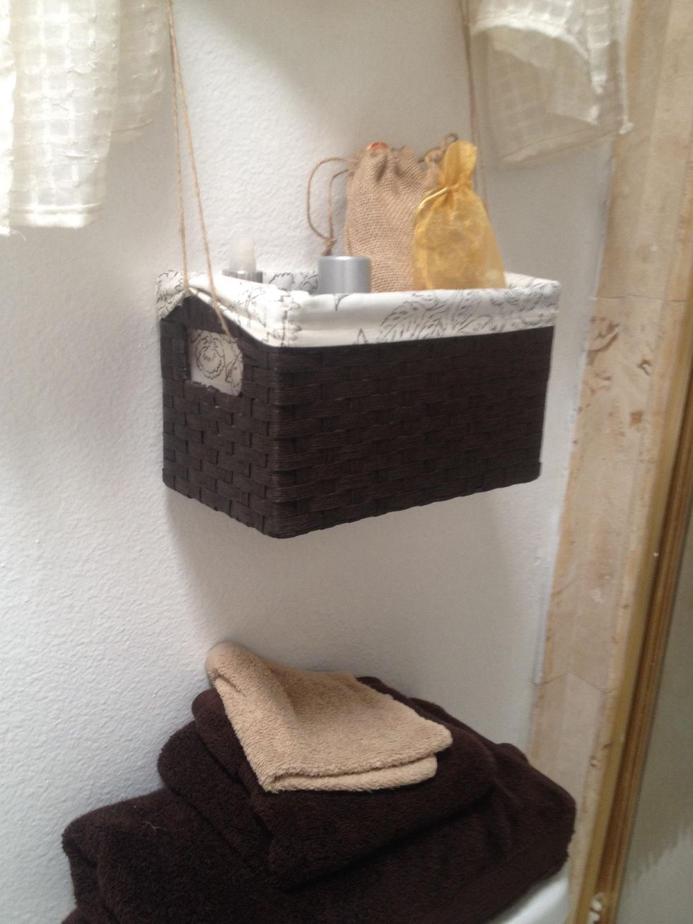 Start with your rectangular basket. I chose one from target that has fabric lining. Make sure it has openings for the rope or ribbon to go through.