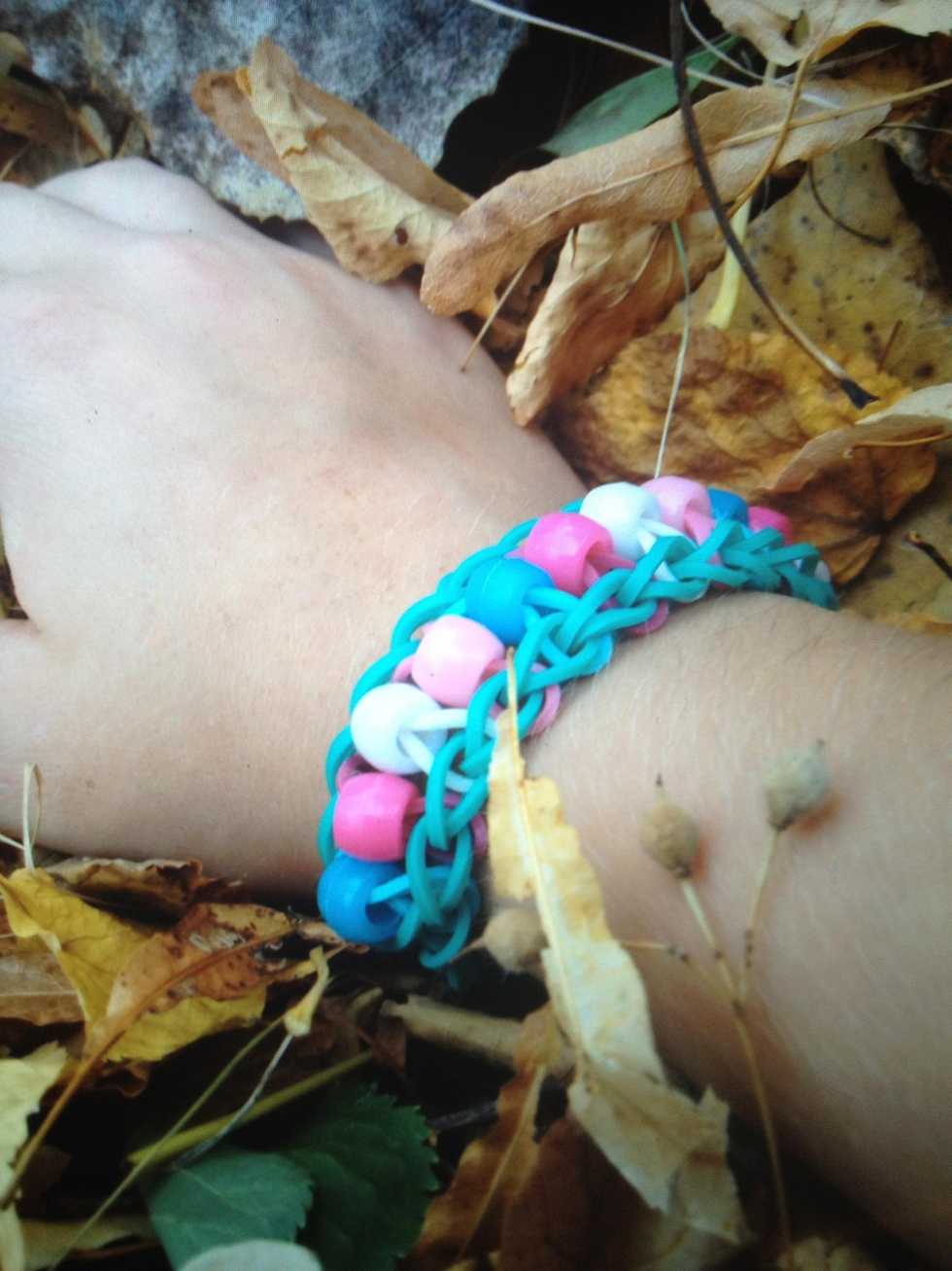Attach a c-clip to the very last peg and pull the bracelet off the loom.