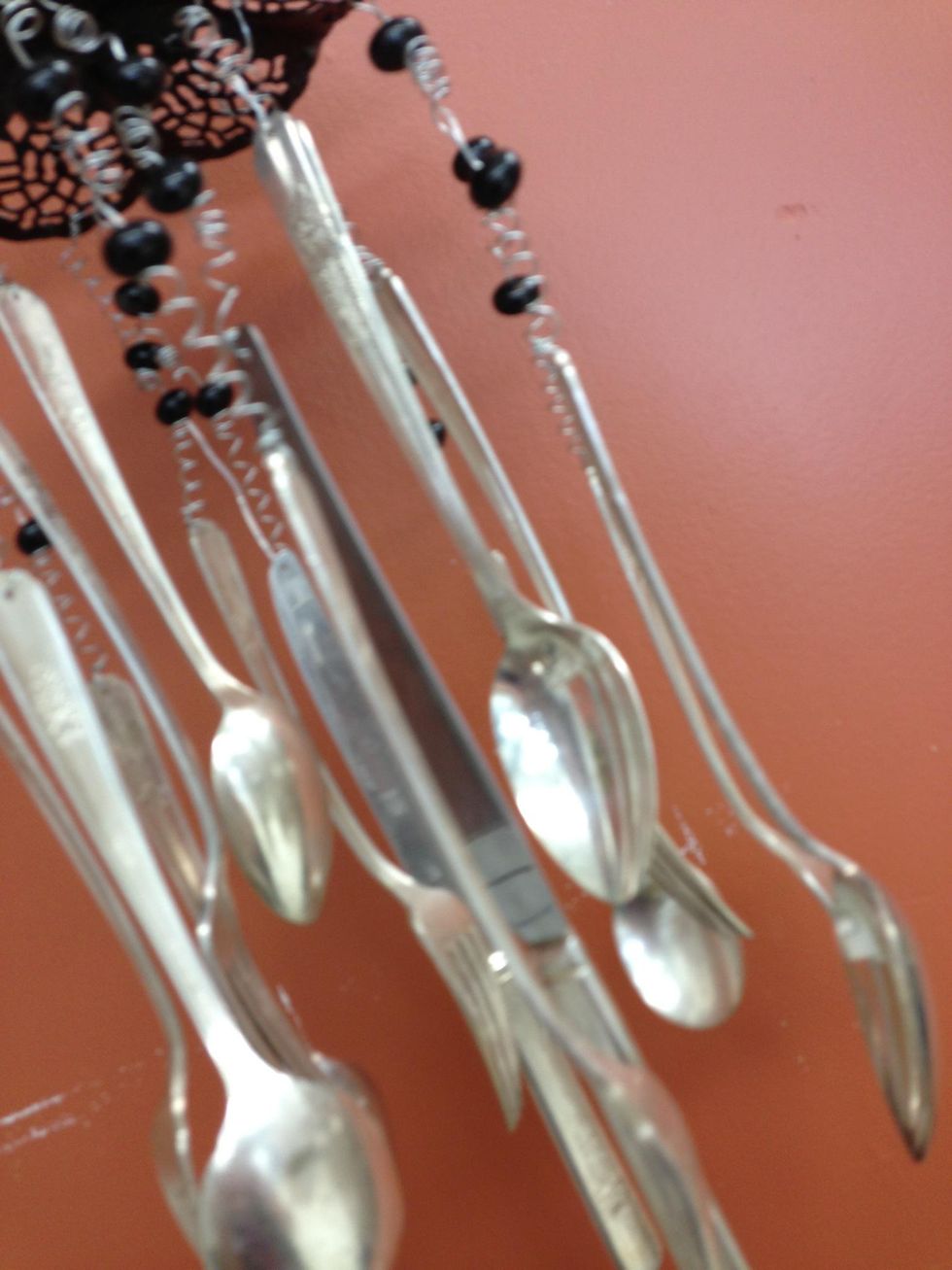 Secure the other end of the wire to the dish. Keep the same cutlery alternating to keep form and balance.
