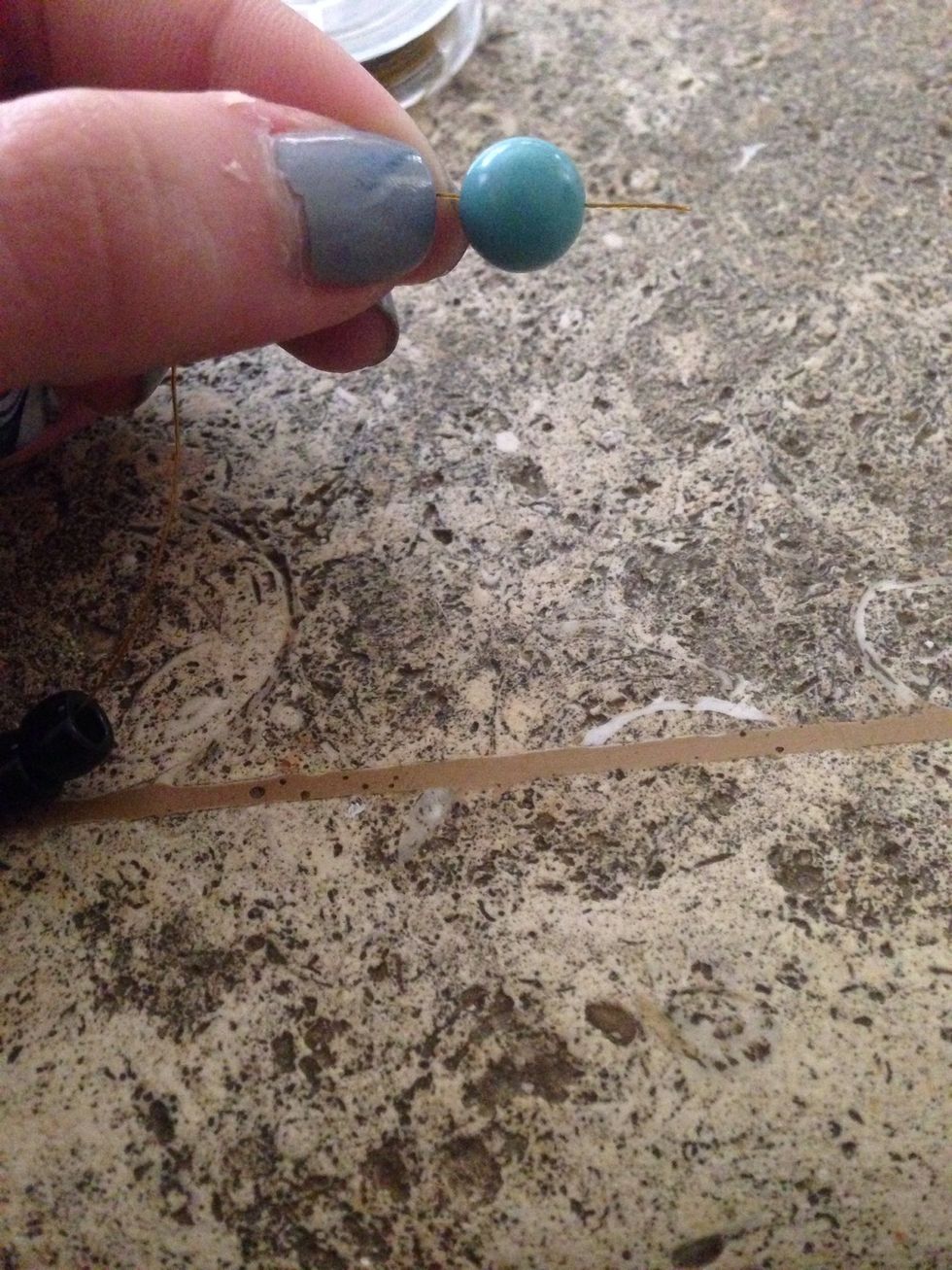 After you finished arrange them on the tray, insert the stones in a silicon wire