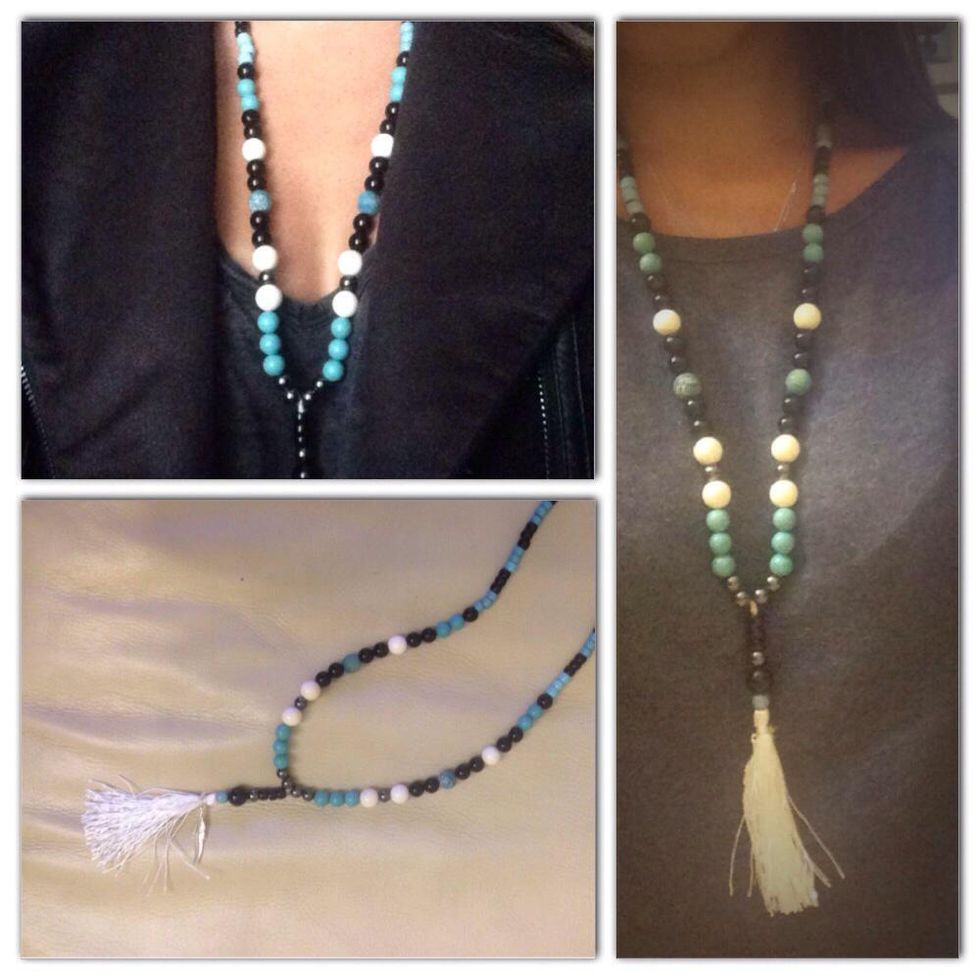 Insert also stones on the pony tail and insert it in the middle of the necklace, when you are done putting all the stones on the silicon wire, tie it at the end 4 times and your done! 😍