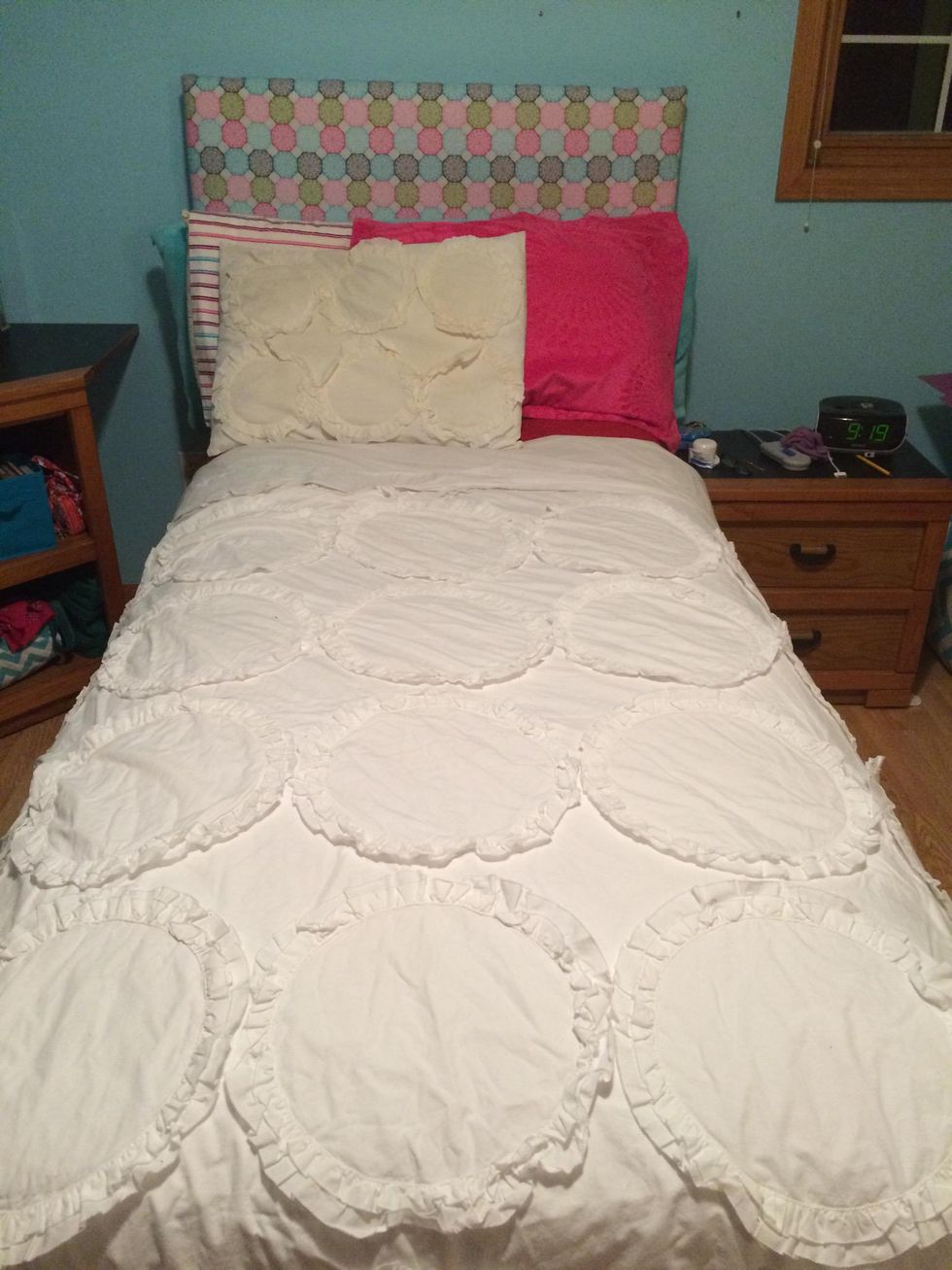 Measure the width of your bed. Add 2-4 inches to your width so your head board shows on each side of your bed. (I added 3 inches). Also decide on the tallness of your headboard.