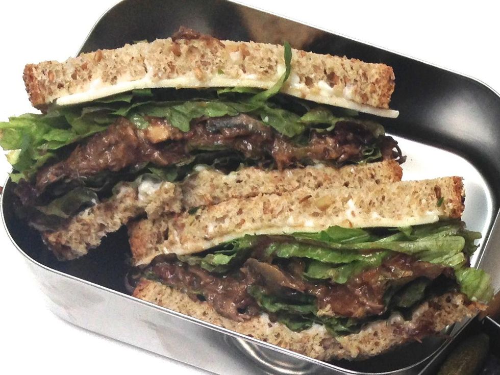I send my coveted sandwiches off to school in Lunchbots to protect them from the backpack. I paired this lunch with sweet grapes, sour mini pickles, crisps, carrots and sugar snap peas & a cookie!