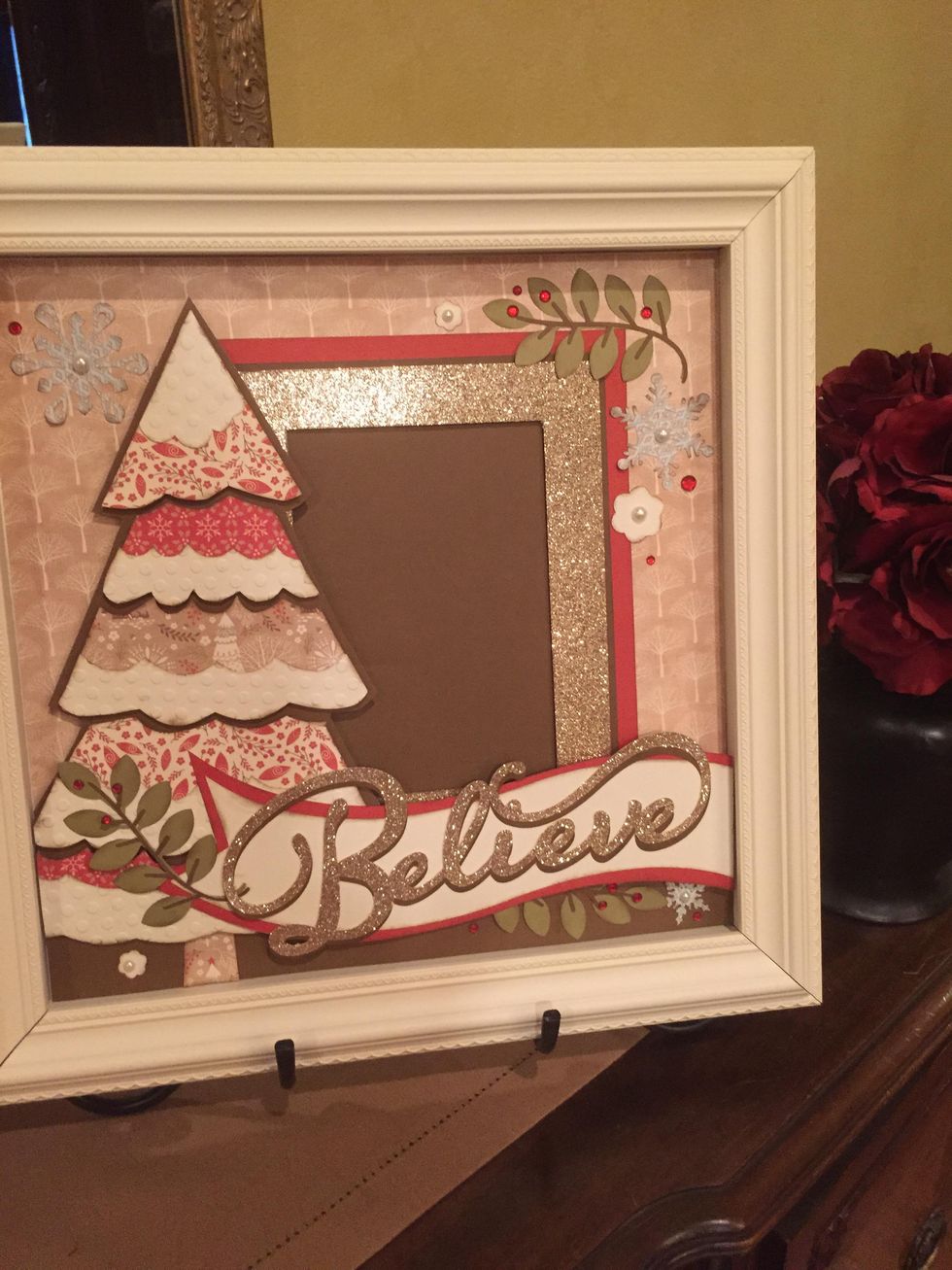 Artbooking Cartridge• “Believe” - p. 74, (Title, Shift) (Real Dial Size) Cut one Chocolate Cardstock and one Gold Glitter Paper. Cut at 3”. • Snowflakes - p. 76, Glacier B&T Paper.