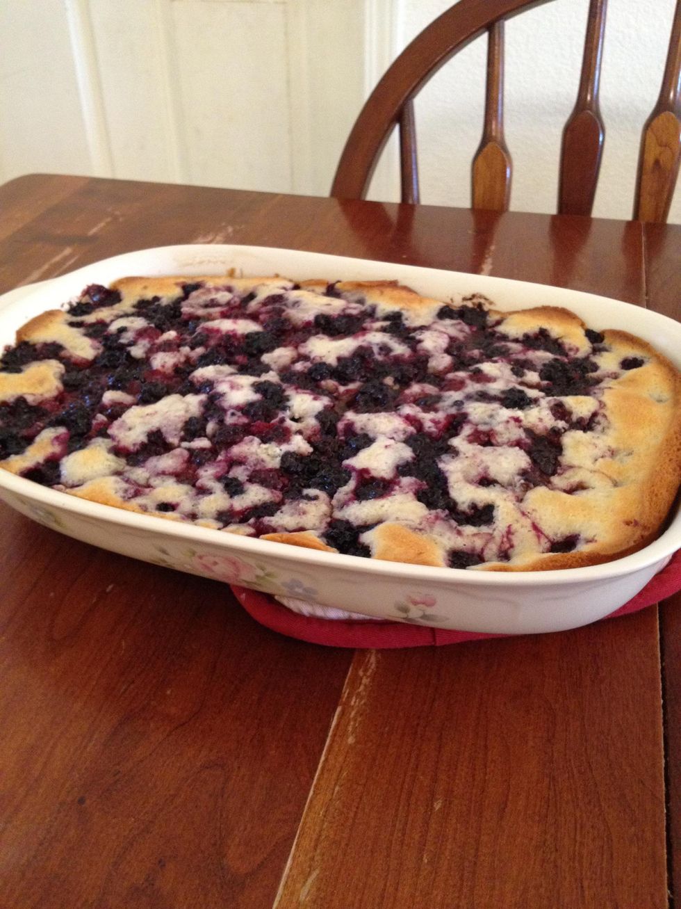 Go berry picking! These are wild blackberries we found growing on public property. This cobbler works fine with fresh, frozen, or canned fruit.