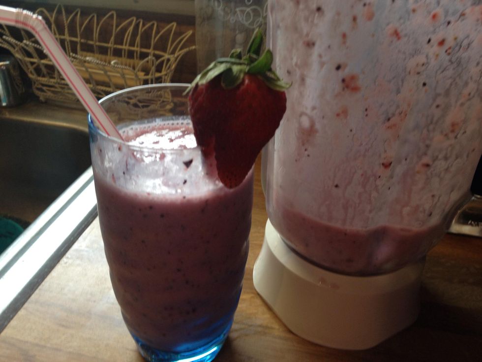 Gather your supplies!Add the berriesAdd the milk and yogurt.Add the iceBlend blend blend!Now pour into a glass and serve!Looks good! Enjoy and good luck!