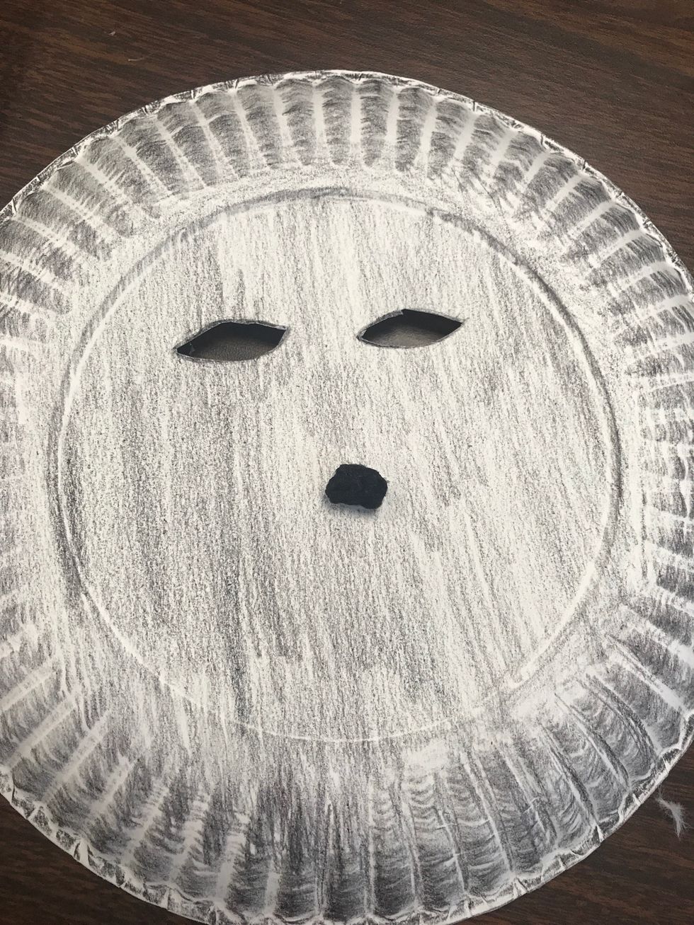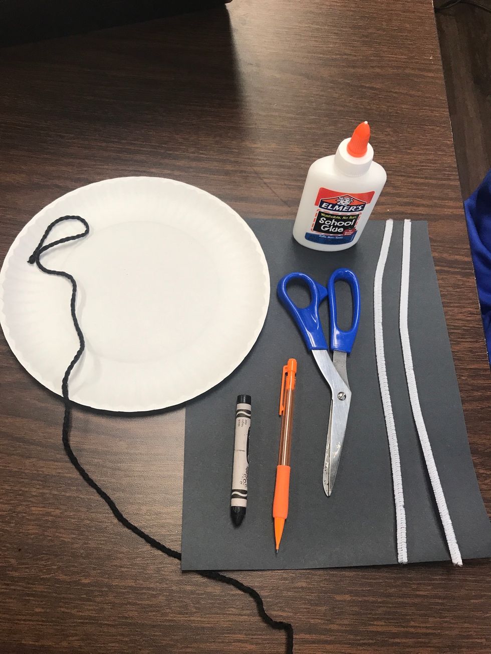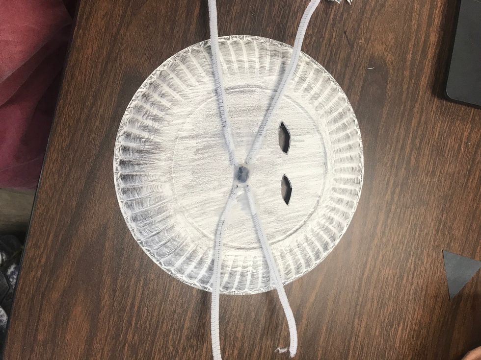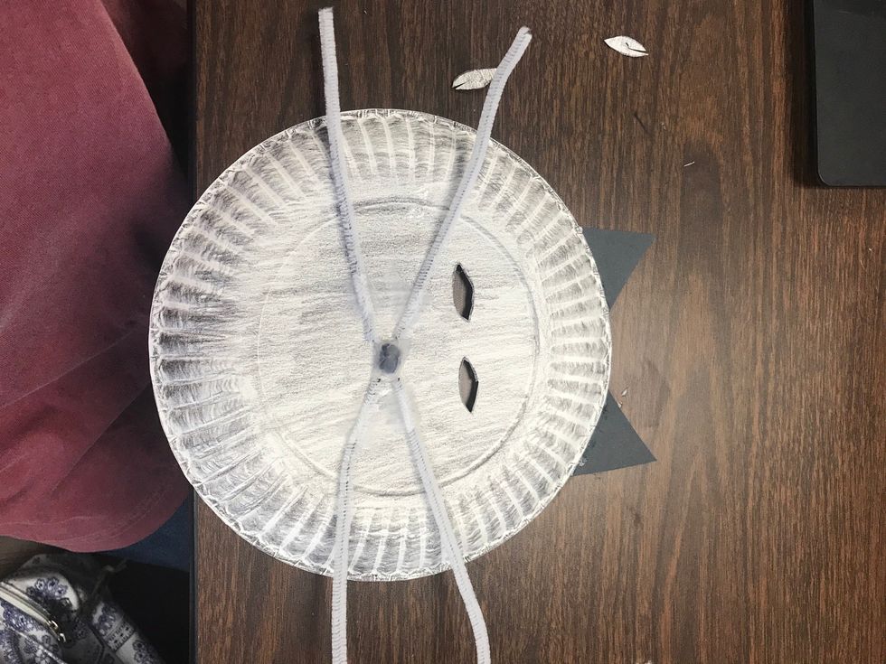 Cut the pipe cleaners in half and tape them to the sides of the plate by the knots as whiskers.