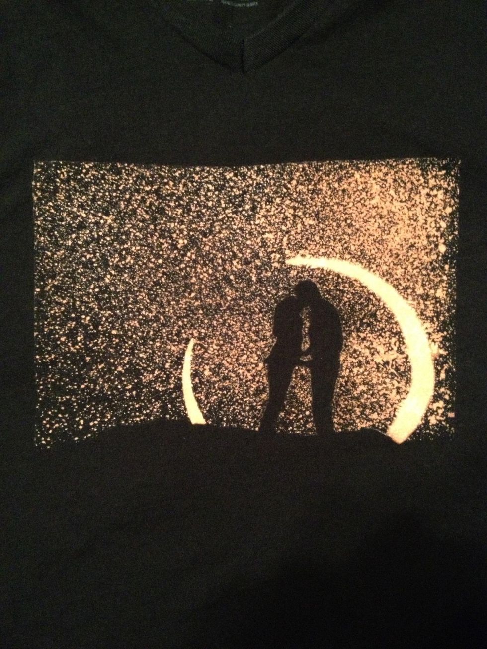 Once the shirt is totally dry repeat steps 8 thru 11 with your other stencil. I added a touch more bleach to my mix to give the final stencil a lighter shade.