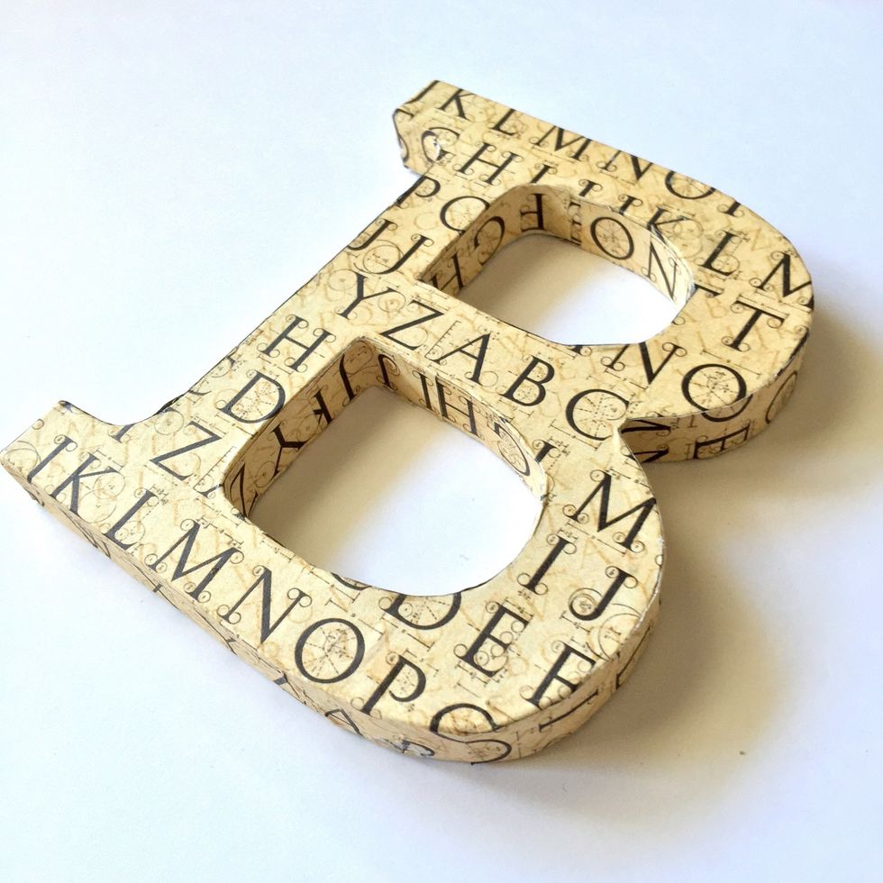 Repeat the process with the other letter. Then spread some decoupage glue on the surface of all the letter and let it dry.
