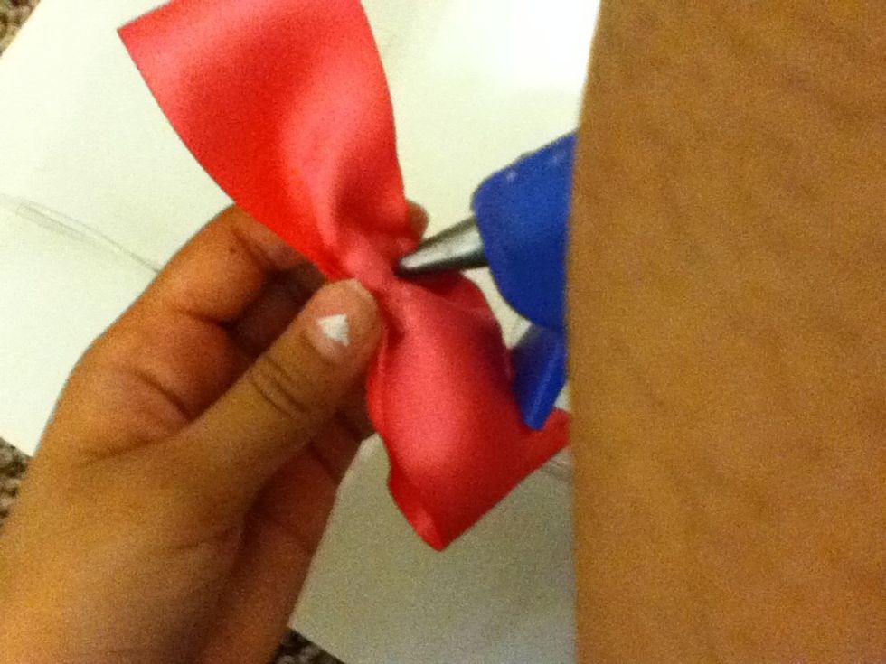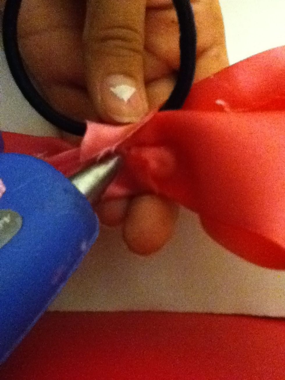 Put glue down the middle of the ribbon sorry for the bad photo its hard to glue and take a picture