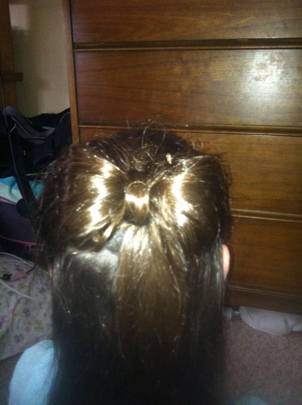 Wrap your hair into the bun shown above. Don't make it too big! You can always make it bigger later on but you can't make it smaller without starting over.