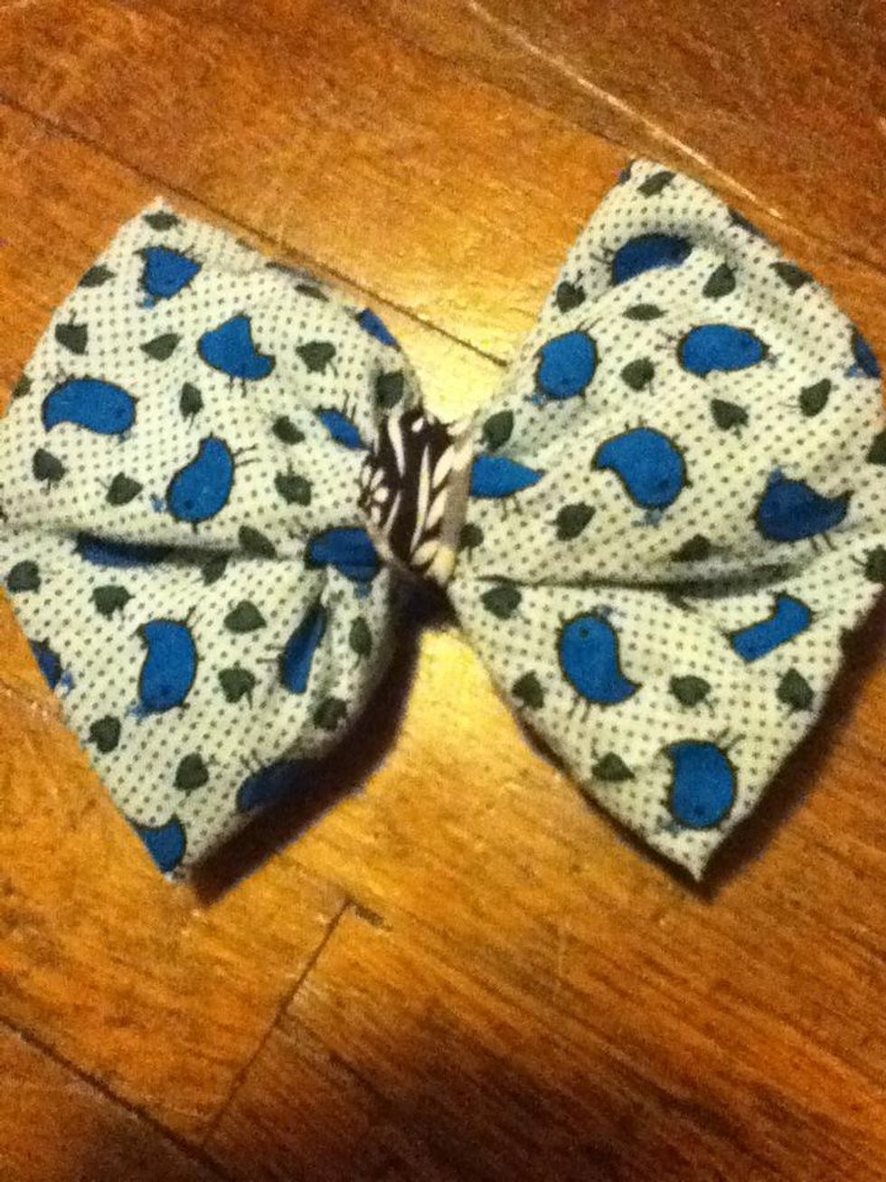 Fold your bandana in halfFold in half againFold in half this wayAgainSquish it so it takes the shape of a bowTie the strip of fabric around the middle of the bowAll done!