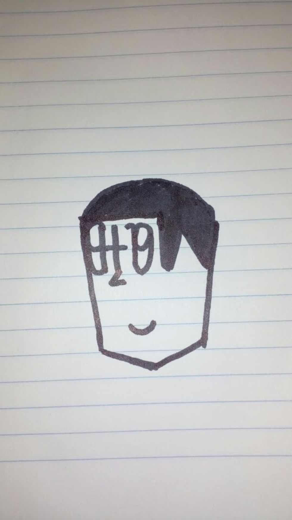Draw a straight line above the eyes and stop where the M begins. Then connect the M to the straight line this the hair.