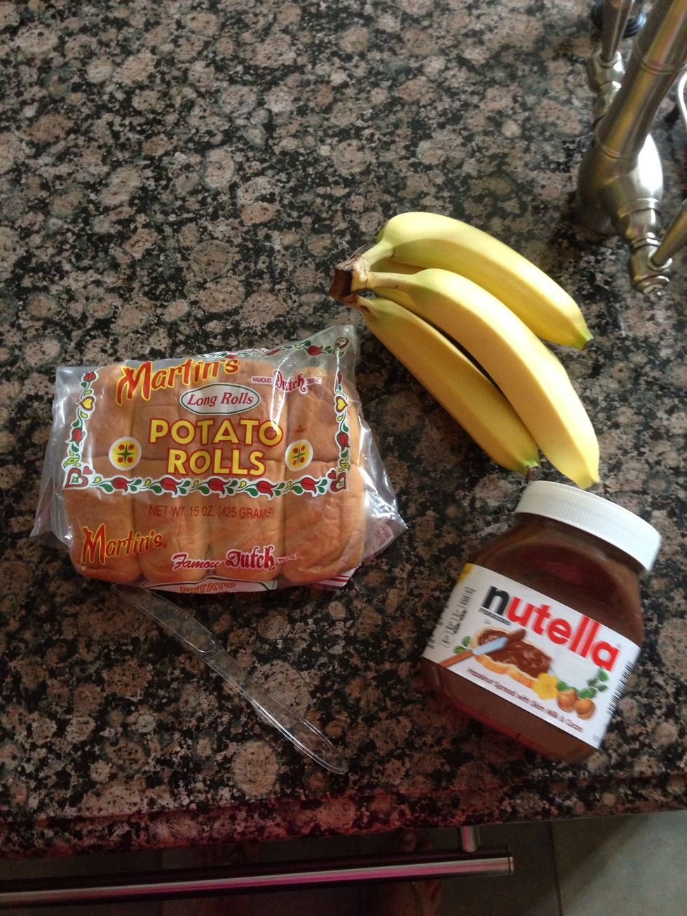 Here are your ingredients: 1)hot dog bun (I used Martin's potato rolls) 2)banana 3)Nutella 4)a plastic knife
