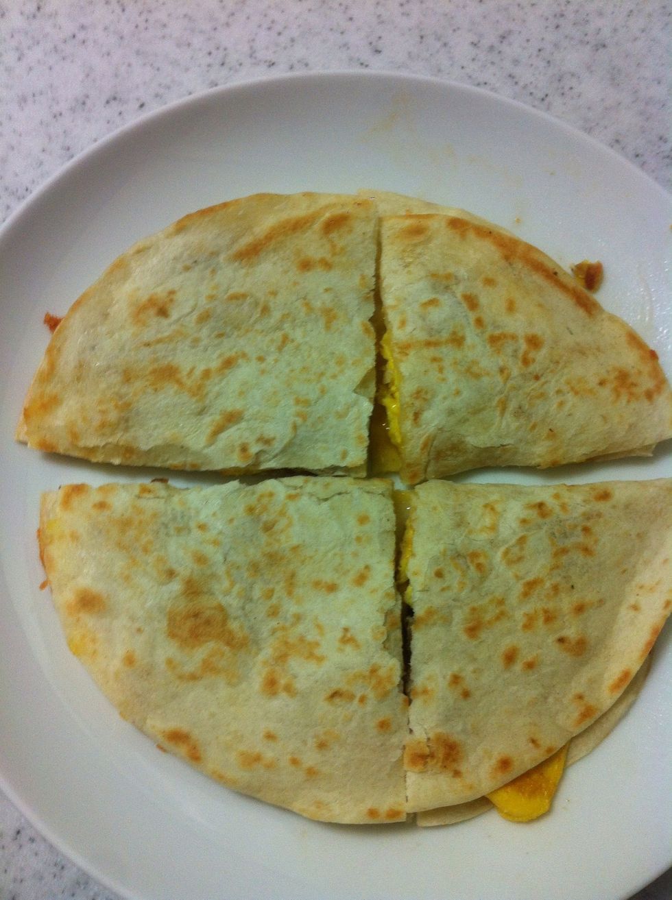When both sides are golden and crispy, remove from heat. Cut and serve!