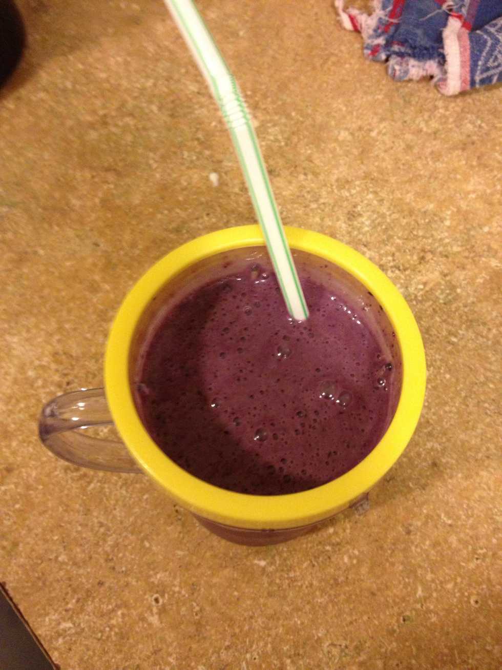 Add 1 cup almond milk1 cup blueberries1/2 scoop of Vega one1/2 cup yogurt1T ground chia seedsBlendTotal cals: 1 cup almond milk 90, 1 cup blueberries 70, 1/2 scoop vega one 61.5, 1/2 cup yogurt 85, 1 T chia seeds 30, total 337
