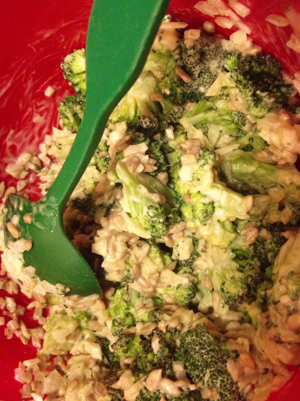 Mix the mayonnaise & vinegar sauce with the broccoli.