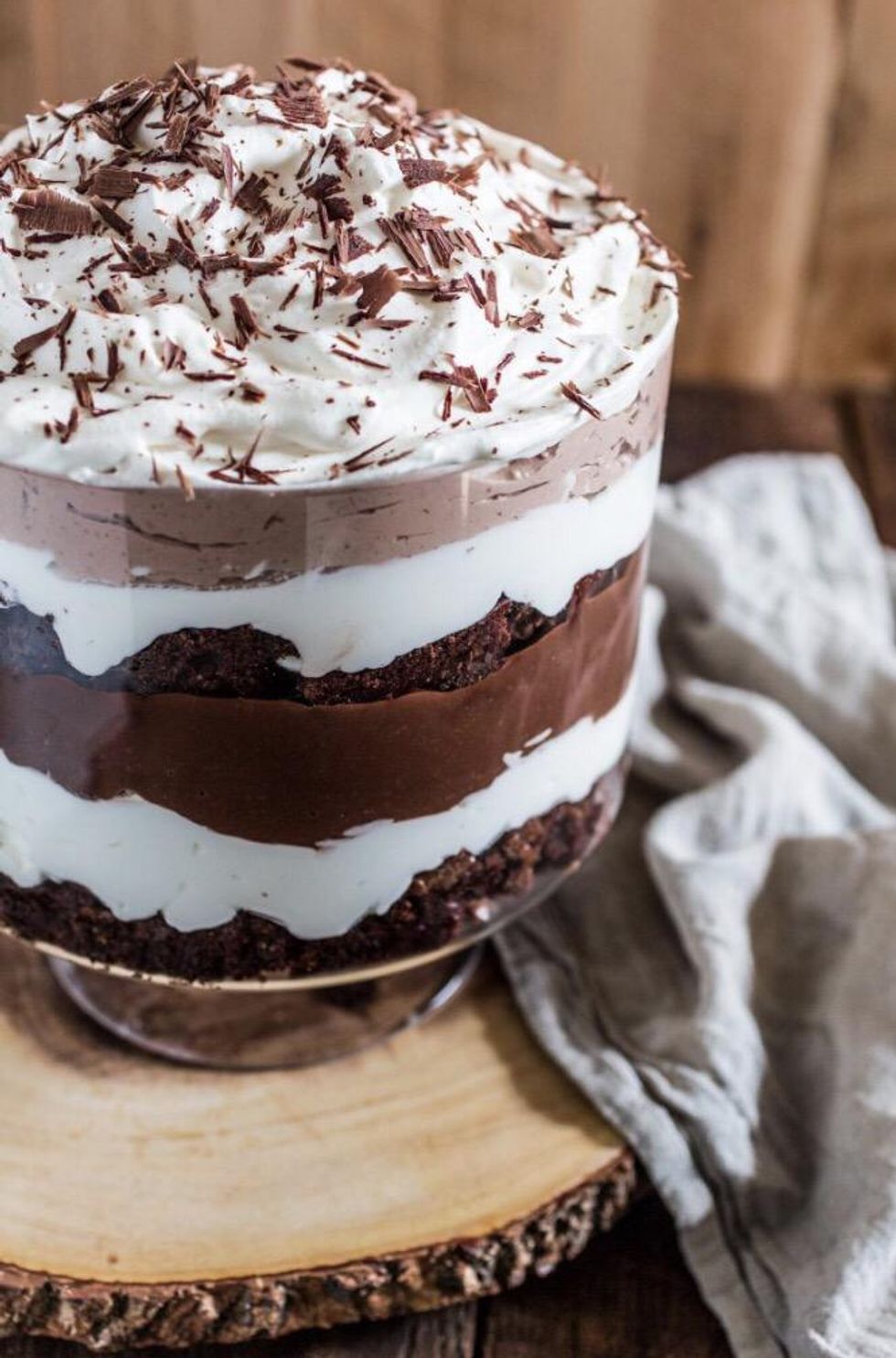 2.0 Nestle Toll brownie mix 2.0 Large Eggs1.0c Vegetbale oil6.0Tbsp Water 2.0 3.9 ounce packages of instant Chocolate Pudding4.0c Milk4.0c Haavy whipping cream1/3c Sugar1.0Tbsp Vanilla extract