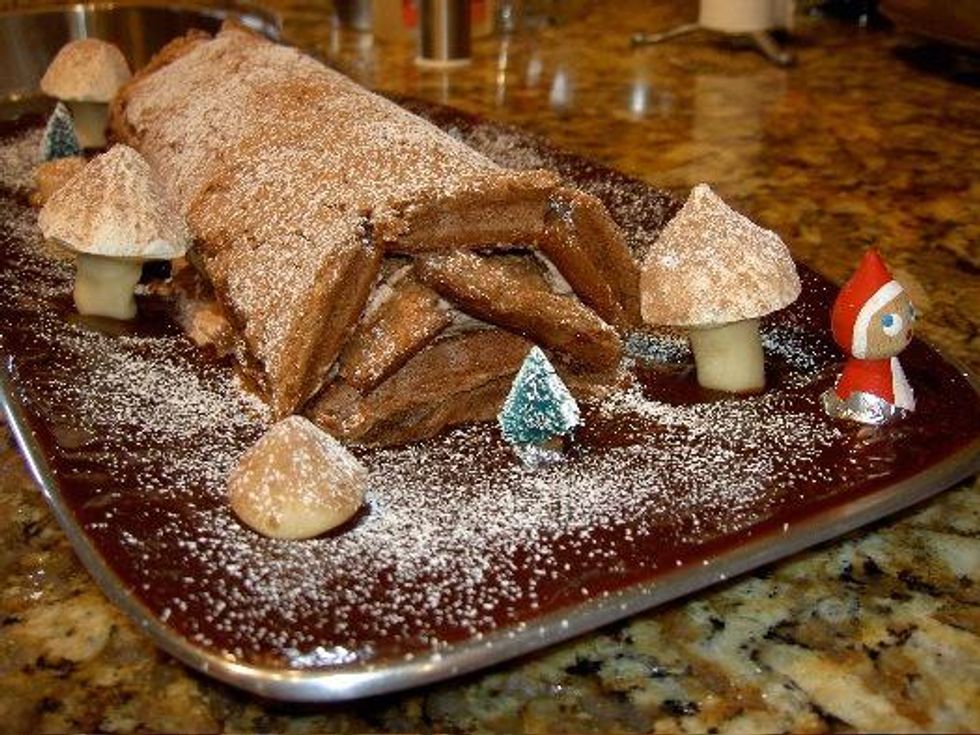 A modern take on the traditional version that calls for sponge cake. The chocolate cake develops a crust that crackles once rolled and create a more organic look to the piece.