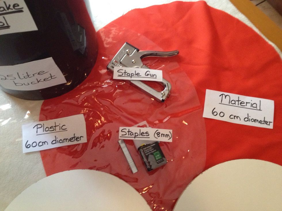 Pull material & plastic fairly firmly & staple on opposite sides.