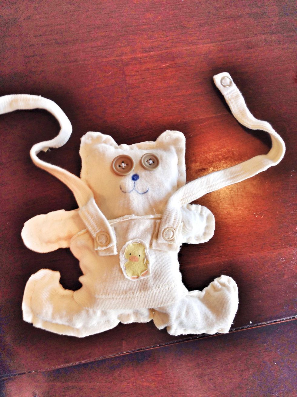 Grab one of those old onesies that might have stains on it. Instead of throwing it away, make a BUILD A BEAR!