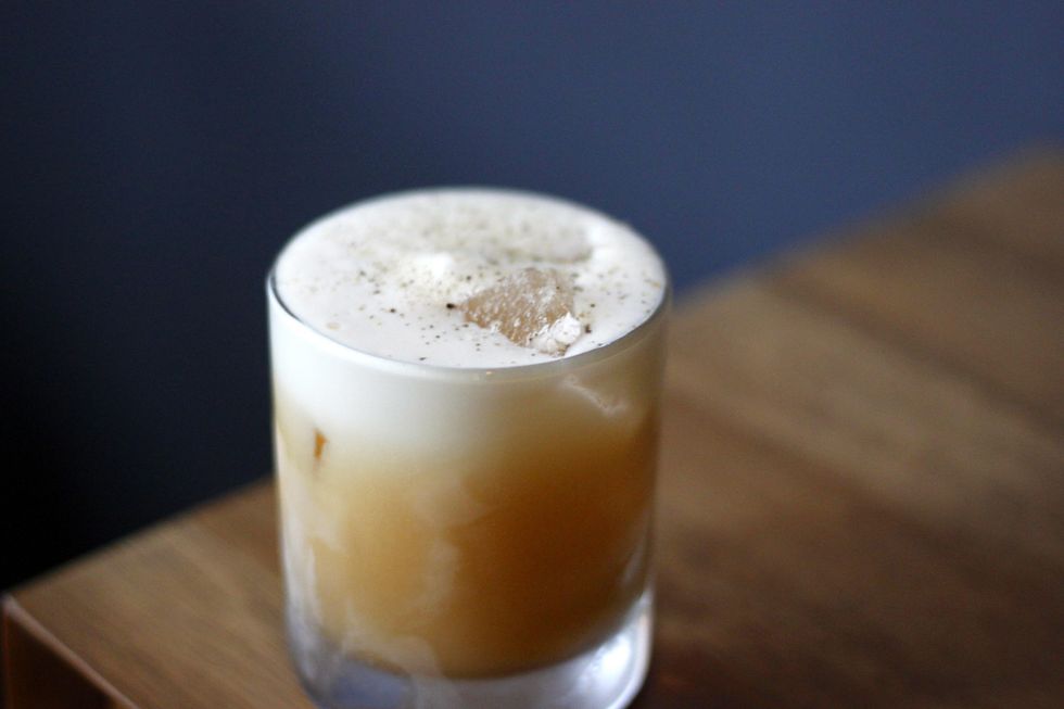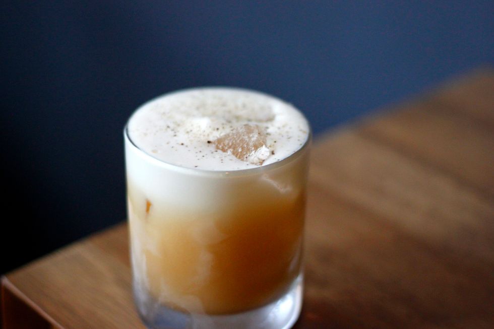 Double strain into an Old fashioned glass and season with some freshly ground white pepper.