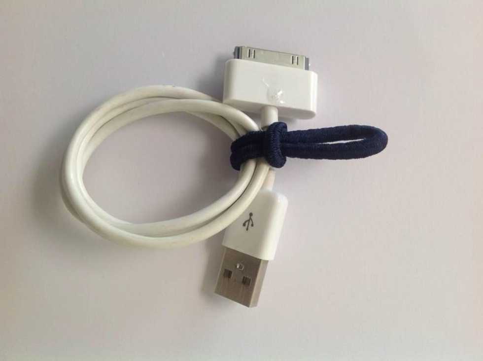 Loop the scrunchy around a wound up cable to hold the cable together in a quick release manner.