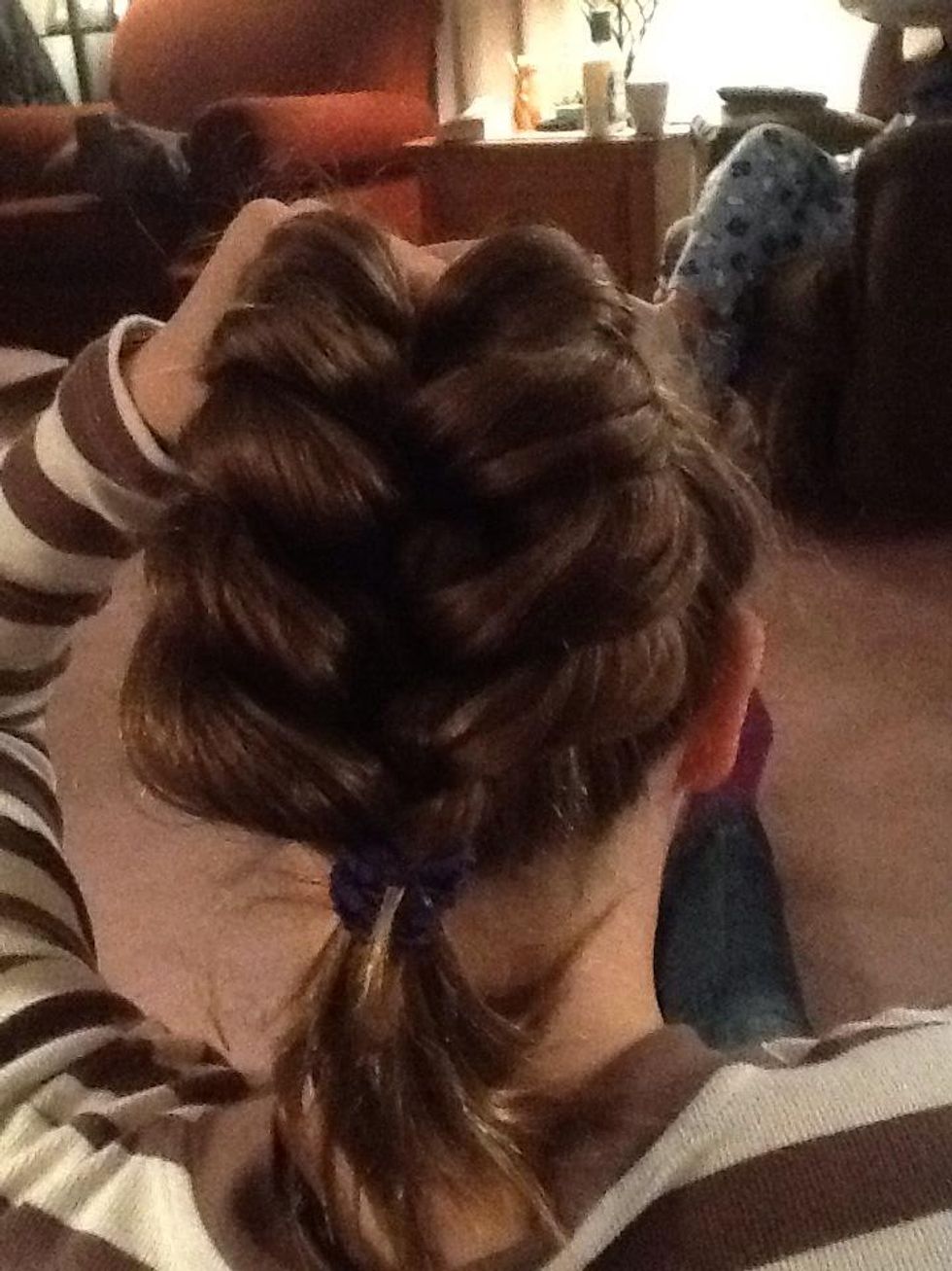 Put all hair into a ponytailLoose French braid all the way downGrab the topAnd pull upYou have a cage braid