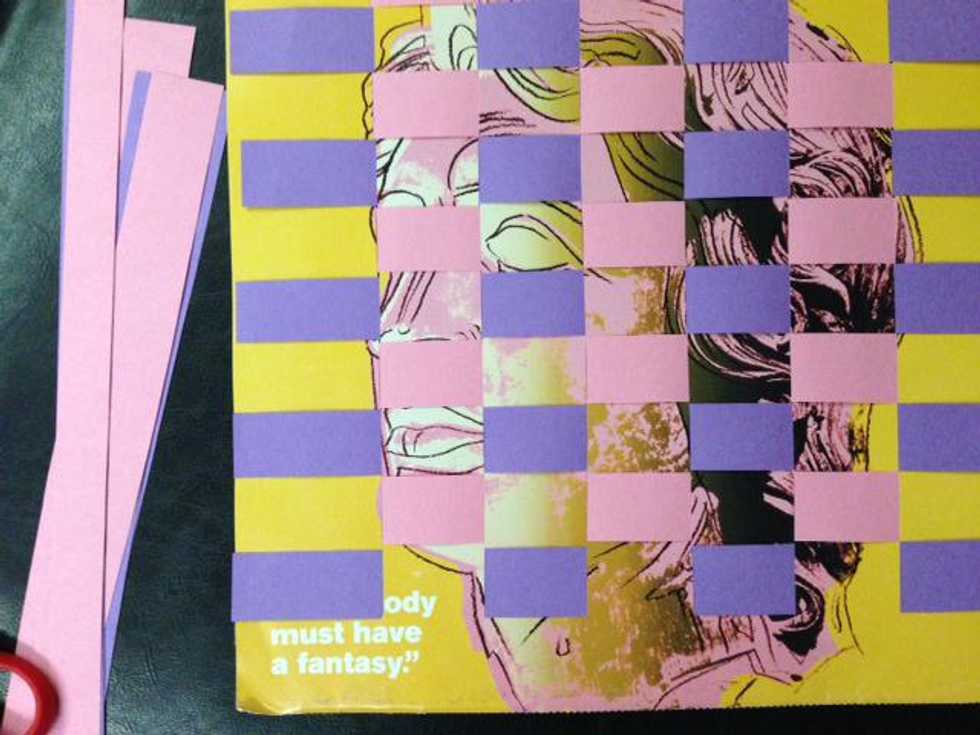Flip the weaving over for the beautiful surprise! (Teacher may laminate the projects to give a glossy look and secure the strips. Students may also use the glue stick to glue down any loose pieces.)