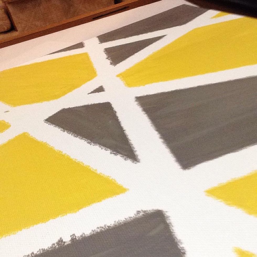 Once you have gathered all your supplies, place long strips of tape across the canvas randomly.