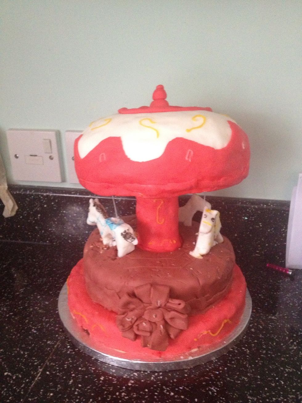 Make the horses and put the wire through (forgot picture so had to take after cake was assembled) I accidentally broke the horse in transportation so it's not the best looking :P
