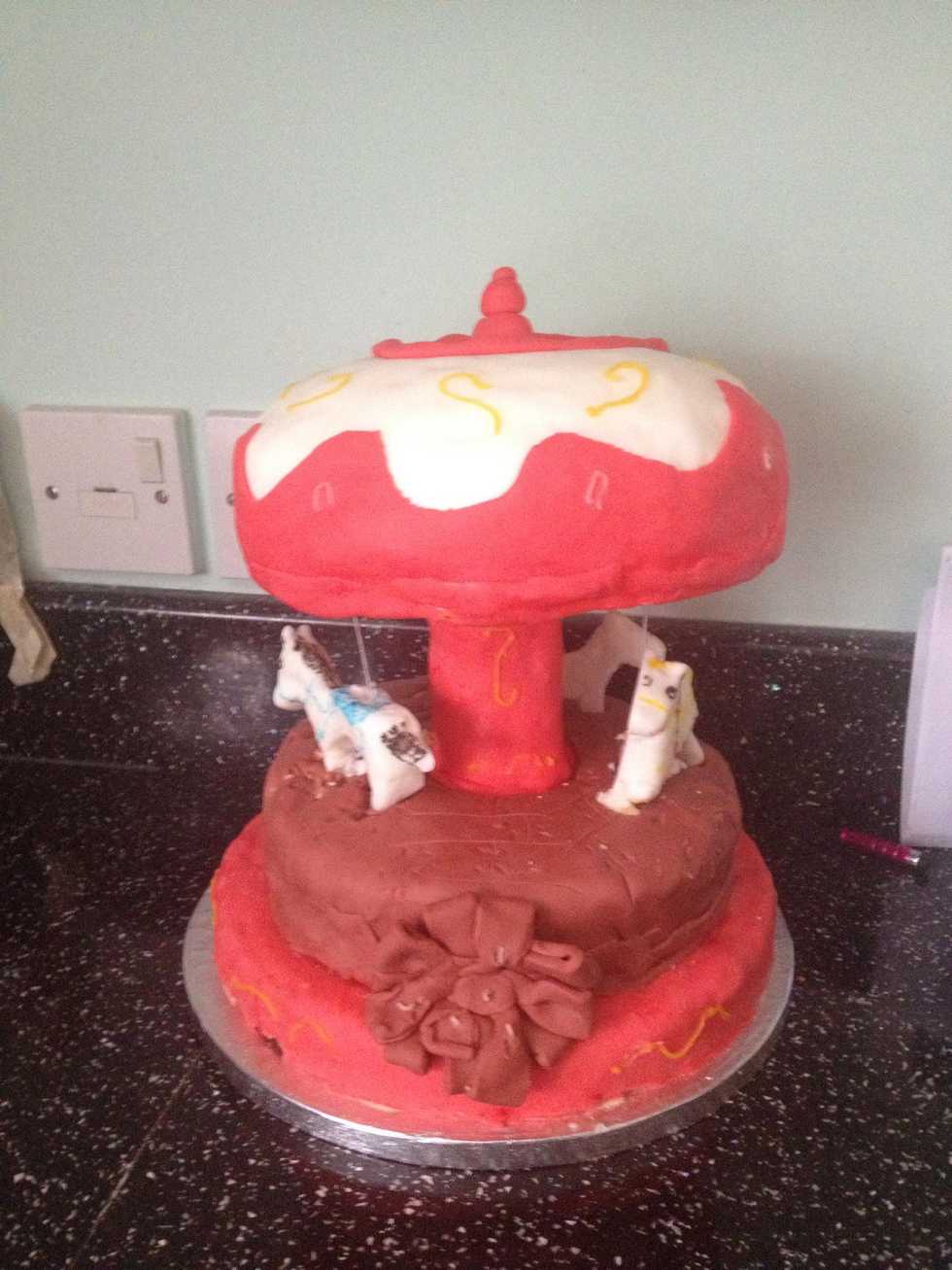 Level out the other 10" cake and cover with red icing (sorry no picture) stick on the first 6" cake with icing and cover with more icing