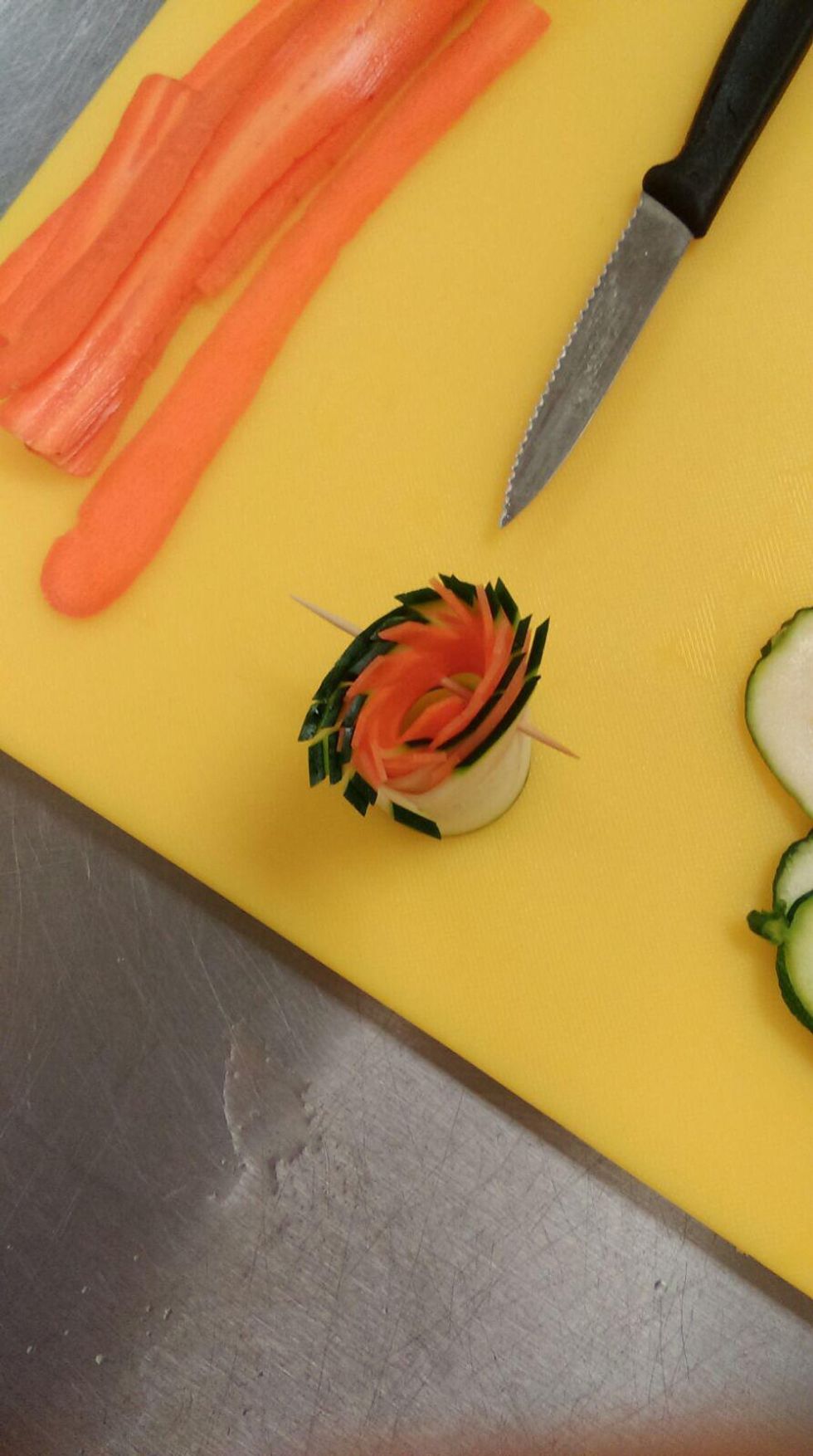 Slice Zucchini and Carrot into thin slices.